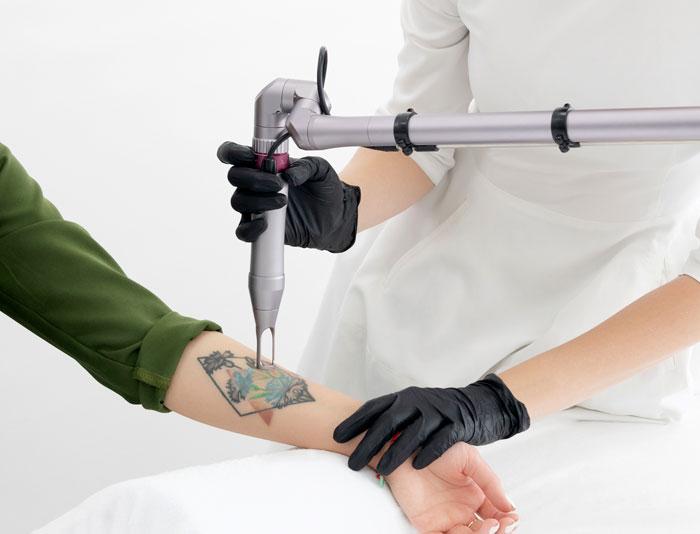 진피층 이하로 주입된 문신을 제거하기 위해서는 피코 레이저를 이용하여 색소를 작은 크기로 잘게 부수어야 합니다. 문신색소가 레이저에 의해 조각조각 나면, 피부의 대식세포가 조각난 색소들을 삼켜 버리게 됩니다. 이러한 치료과정을 4~8주 정도에 한번씩, 회차를 반복하다보면 서서히 색소가 배출되어 문신이 옅어지게 됩니다.